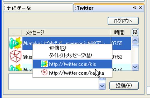 右クリックのユーザーリンクにアイコンを設定しました。 投稿ボタンにmnemonicを設定したので、Windowsならalt+pで投稿できます。 ダウンロード http://rps13.180.jp/Netwitter_b06.zip http://d.hatena.ne.jp/nowokay/20070715