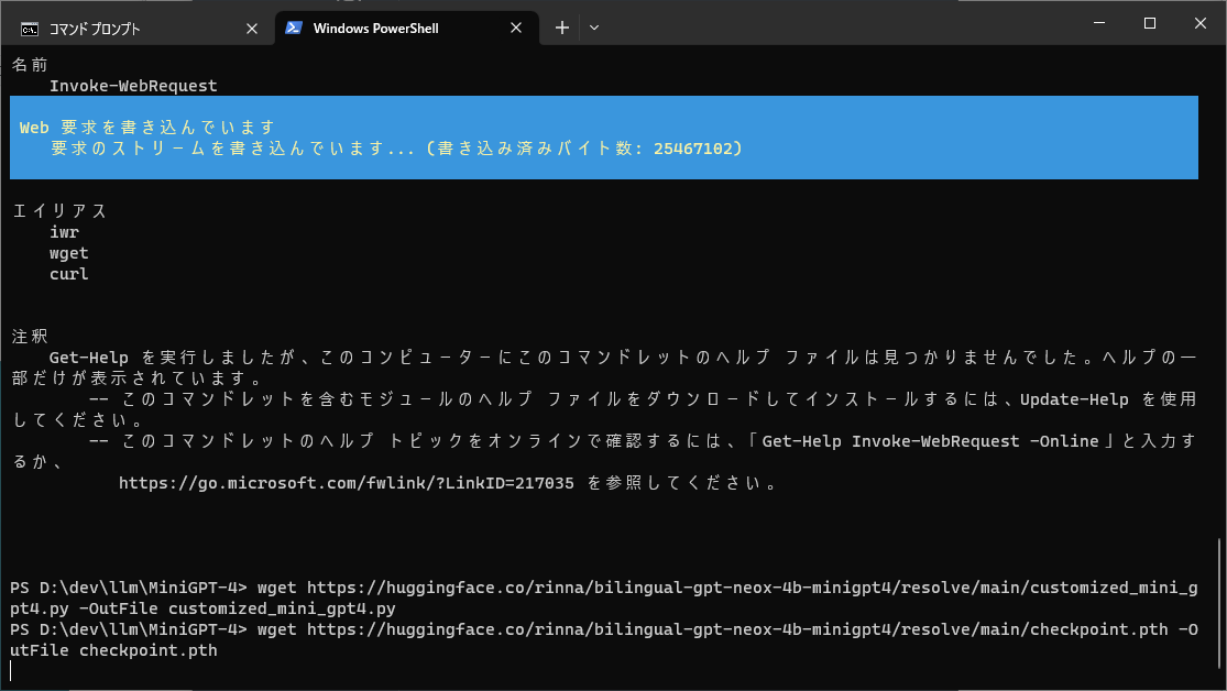 そして、rinna用にカスタマイズしたMiniGPT-4のスクリプトとBLIP2-LLMのcheckpoint.pthをダウンロード。
