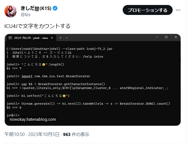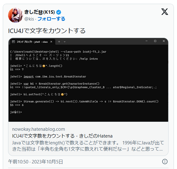 ICU4Jで文字をカウントするhttps://t.co/uiihK9Y6IQ